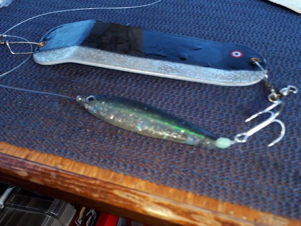 Vi fik en god dag , men laksene var nok trykket lidt da de kun tog på de dybe agn i 120 og 130 fod.