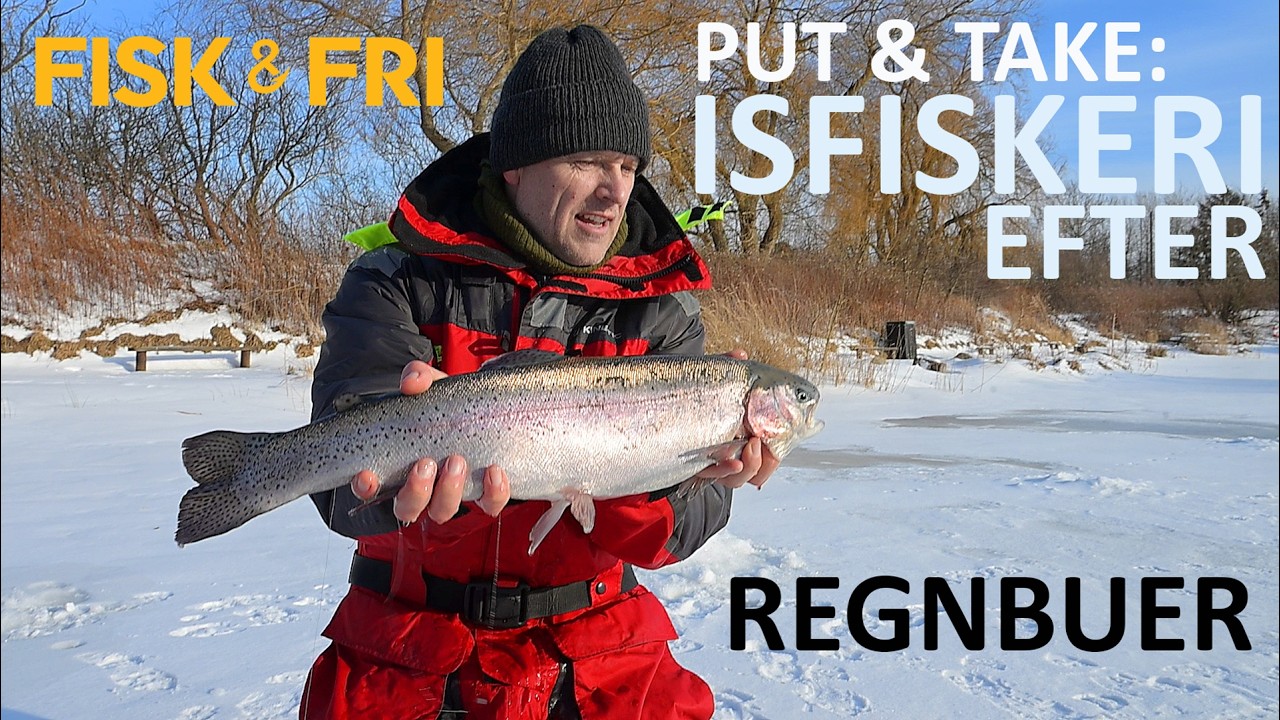 Isfiskeri efter put and takesøens regnbueørreder er en super sjov metode, når der er is på søerne.